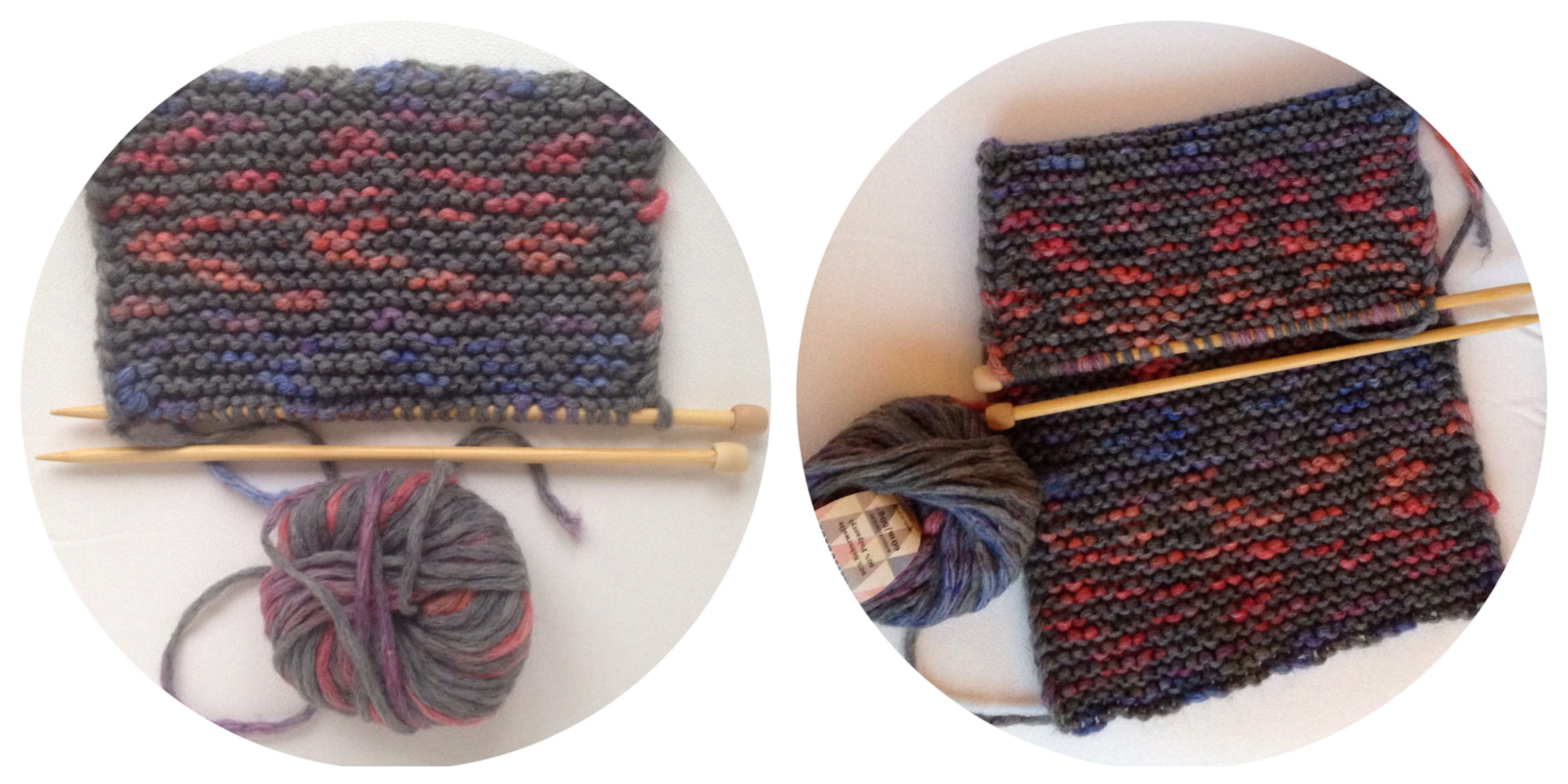 Para hacerlo monté 30 puntos, lo que al final me dio un ancho total de 29 cm y tejí pasadas de punto derecho de 30 puntos hasta que se terminó la lana. Así la longitud total que tejí fue de unos 88 cm.