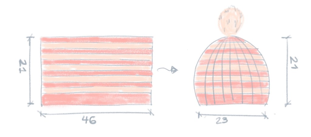 Este gorro lo he hecho en plano, es decir, tejí un rectángulo luego uni los extremos y por último cerré la coronilla.