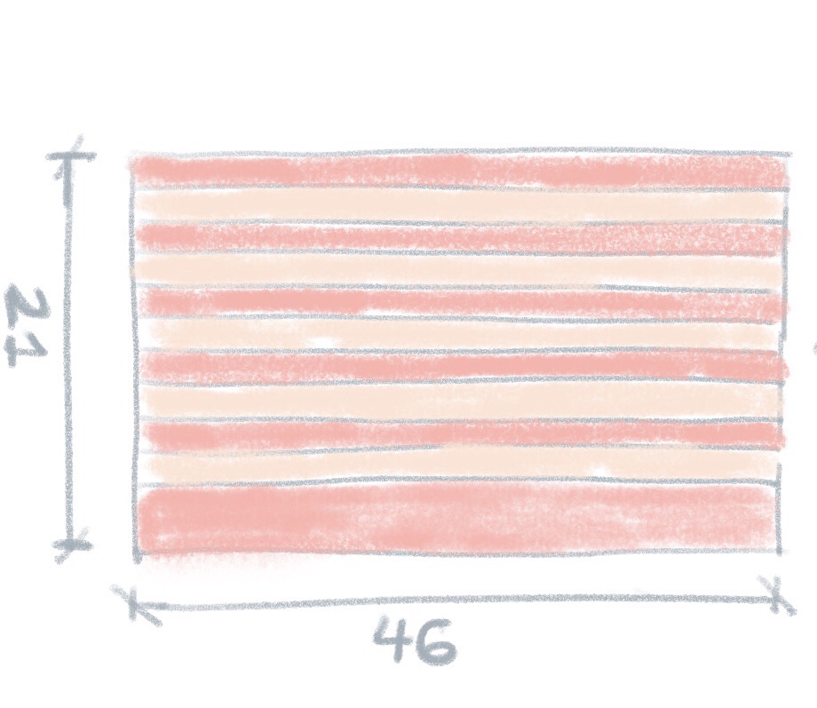 Una vez hecho esto tenemos un rectángulo de 46 cm de ancho y 21 cm de alto.