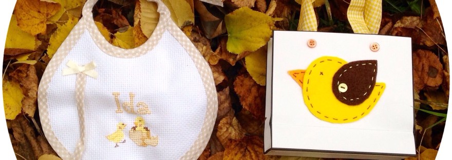 Baberos bordados a punto de cruz con bolsita de regalo DIY